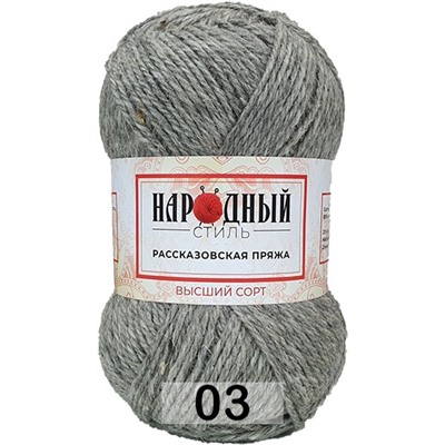 Пряжа Рассказовская Народный стиль изготовлена из полугрубой овечьей шерсти. Она идеальна для вязания изделий в рустикальном стиле, для носков и варежек. Изделия будут теплыми и, благодаря полиэфиру, более долговечными. Рекомендованы спицы 4,5-5, плотность вязания 26х38. Производитель допускает отклонение по весу +/- 15 гр, по длине нити +/- 20 м.