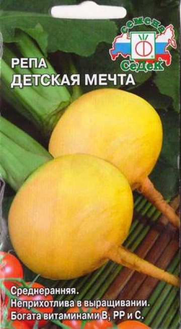 Среднеранний (от всходов до уборки 65-80 дней) сорт. Корнеплоды округлые, желтые, массой 150-200 г, с тонкой, гладкой кожицей и плотной, сочной, жёлтой мякотью. Отличного вкуса, с высоким содержанием витаминов и солей калия, натрия, кальция, магния, фосфора и железа. Ценность сорта: холодостойкость, выравненность корнеплодов, дружное формирование урожая и стабильная урожайность. Рекомендуется для употребления в свежем, варённом, пареном, печённом и солёном виде. Фасовка 1г Комментарии к товару