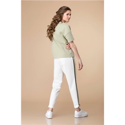 Страна производитель: Республика Беларусь Комплектация: Брюки, Джемпер Сезон: Лето Коллекция: Лето, Лето 2023 Стиль: На каждый день Цвет: олива Материал: трикотаж Состав: хлопок 70%, полиэстер 26%, спандекс 4% Рост: 164 см Описание: Костюм женский двухпредметный: джемпер и брюки предназначен для повседневной носки. Джемпер женский прямого силуэта, длиной до линии бедер. Перед и спинка цельнокроеные. Низ переда декорирован термоаппликацией. Горловина круглая, с втачной отделочной планкой. Джемпер со спущенным плечом, рукав втачной короткий, одношовный. Брюки длинные, слегка заужены к низу. Передние половинки с карманами в боковых швах, с отделочными лампасами. Задние половинки цельнокроеные. Верхний срез с притачным поясом, собранным на эластичную тесьму, с кулисой и втянутым в нее декоративным шнуром, фиксирующим ширину талии. Длина спинки 56 см. Длина рукава от горловины 37 см. Длина брюк 97 см Комментарии к товару