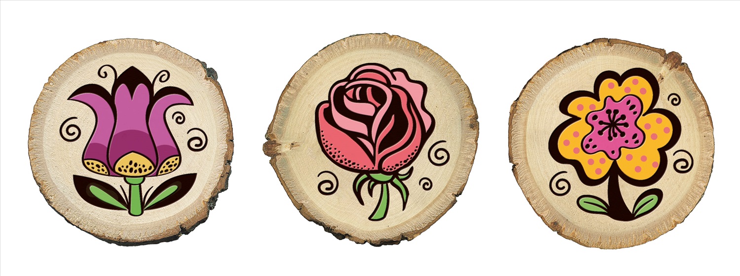 Набор спилов дерева для выжигания - отличный подарок для любителей данного хобби. С его помощью можно создать уникальный сувенир для друзей или близких! На спилы наносятся изображения цветов, которые затем выжигаются и раскрашиваются.