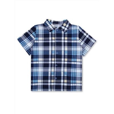 Классная рубашка для мальчика, выполненная из 100% хлопка - кулирной глади. Рубашка с коротким рукавом, впереди застёгивается на кнопки. Модель украшает симпатичный набивной рисунок в клетку.