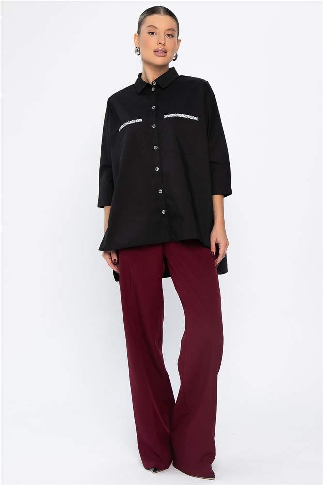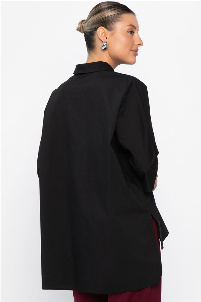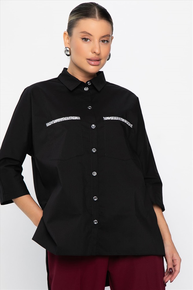 Стильная рубашка — базовая основа гардероба! Подходит как для офиса, так и для учёбы. Рукава длиной 3/4, два накладных кармана, длина рубашки сзади длиннее, чем спереди. Оверсайз-модель придает стильный и современный вид, при этом прекрасно скрывая все недостатки фигуры. Это великолепный выбор для тех, кто предпочитает оригинальность и стиль в своем аутфите. Прекрасно сочетается с различными низами и аксессуарами.