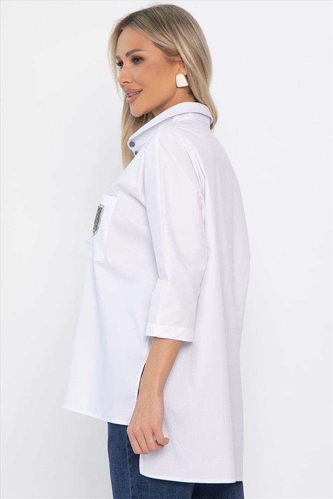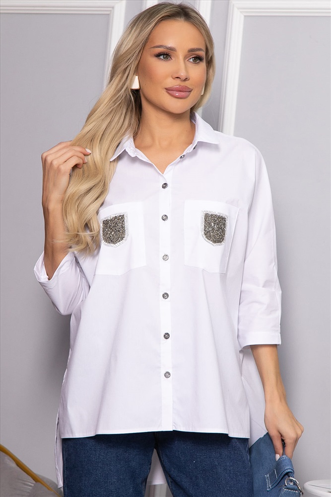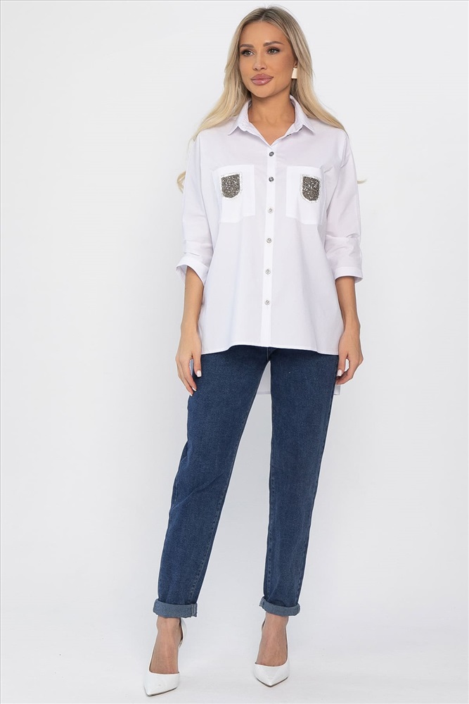 Цвет: белый Состав : 95% хлопок, 5% эластан Материал : хлопок Цвет : белый Принт : отсутствует Силуэт : свободный Карманы : есть Подкладка : отсутствует Вид застежки : пуговицы Декоративные элементы : карманы с блестками Длина : 44-71 см, 46-72 см, 48-73 см, 50-74 см, 52-75 см, 54-76 см Длина по переду (ассиметричный крой) : 44-65 см, 46-66 см, 48-68 см, 50-69 см, 52-71 см, 54-72 см Отснято с джинсами Б11176 [ https://nsk.ltcollection.ru/catalog/bryuki/148926/ ] Стильная рубашка — базовая основа гардероба! Подходит как для офиса, так и для учёбы. Рукава длиной 3/4, два накладных кармана, длина рубашки сзади длиннее, чем спереди. Оверсайз-модель придает стильный и современный вид, при этом прекрасно скрывая все недостатки фигуры. Это великолепный выбор для тех, кто предпочитает оригинальность и стиль в своем аутфите. Прекрасно сочетается с различными низами и аксессуарами. Внимание! Рекомендуем ориентироваться на размерную сетку и выбирать свой привычный размер, согласно размерной таблице. *Допуск отклонения длины при массовом производстве 1-3 см является нормой. Уход за изделием: Ручная стирка или стирка в машине при температуре до 30 °C, деликатный режим. Не использовать отбеливатели. Разрешена глажка при температуре до 110 °C. При глажке использовать специальную насадку на подошве утюга, гладить с паром. Не замачивать и не выжимать. Стирать изделие наизнанку, отдельно от других вещей.