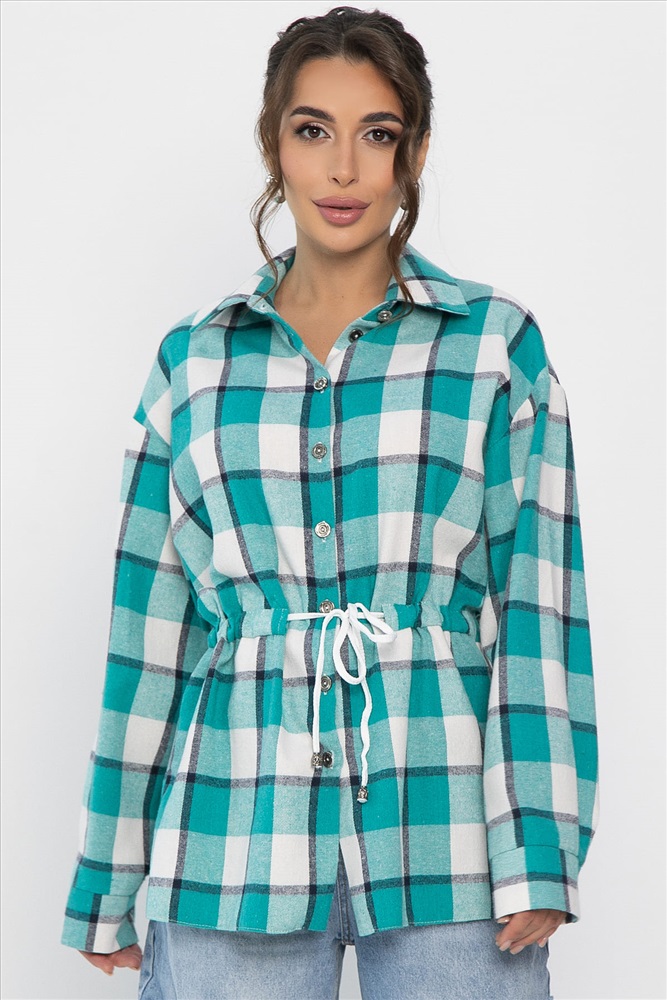 Рубашка в клетку в бело-зелёном цвете станет стильным акцентом в вашем гардеробе, позволяя экспериментировать с разными образами. Её можно носить как самостоятельный элемент или использовать в многослойных ансамблях. По бокам есть разрезы. Рубашка с воротником-стойкой и аккуратной застежкой на пуговицы выглядит современно и элегантно. Спущенное плечо добавляет расслабленности, а кулиска на талии подчеркивает фигуру. Создайте свой уникальный стиль с нашей новой клетчатой рубашкой!