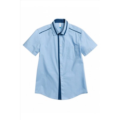 Рубашка для мальчиков Classic Fit. Воротник со вставкой из ткани контрастного цвета. В поддержку вставке выполнен кант в шве притачивания кокетки по переду и стойка воротника. Нижняя планка немного шире, чем верхняя планка с петлями, что в застегнутом виде имитирует узкий декоративный кант. Карман с застежкой на пуговицу.