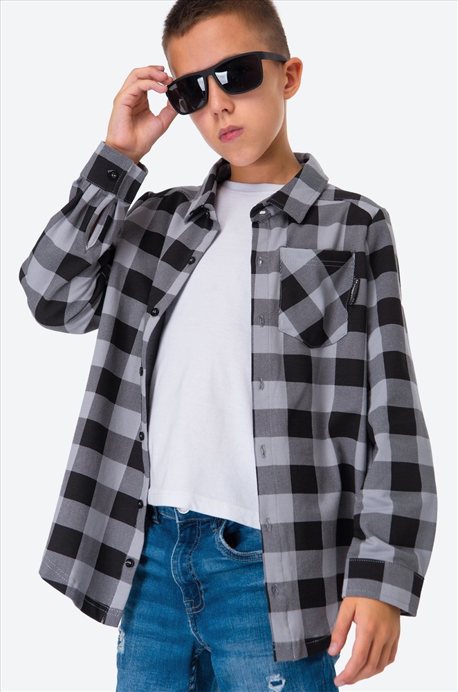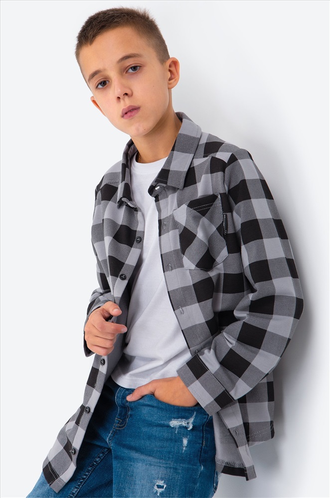 Стильная рубашка в клетку для мальчиков и мальчиков подростков выполнена из футера. Детская рубашка станет отличным дополнением к гардеробу вашего ребенка и подарит ему комфорт в любое время года.