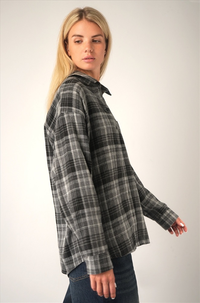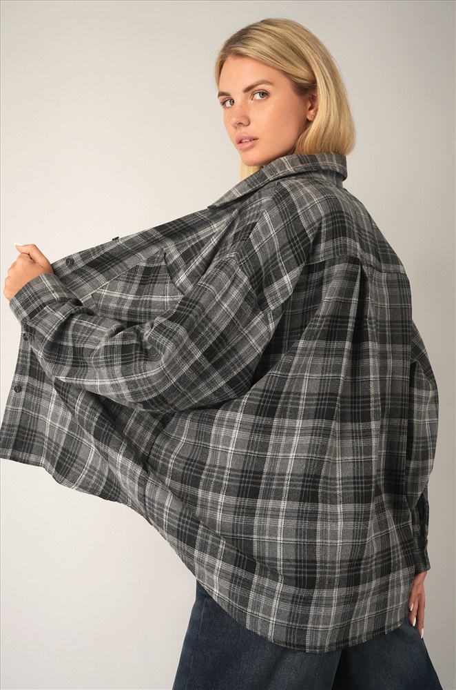 Женская рубашка оверсайз в клетку — про уверенность, комфорт и стиль без лишнего старания. Мягкая хлопковая ткань, свободный крой и насыщенный серый оттенок создают образ, который не захочется снимать. Удлиненная рубашка в клетку подходит на любой тип фигуры.