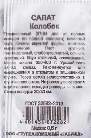 Позднеспелый (87-94 дня от полных всходов до полной спелости) кочанный сорт. Рекомендуется для выращивания в открытом и защищенном грунте. Предпочитает плодородные, удобренные почвы. Выращивают рассадным и безрассадным способом. Розетка листьев полуприподнятая. Лист крупный, темно-зеленый, слабопузырчатый, сочный, хрустящий. Кочаны округлой формы, плотные, выравненные. Вкус отличный, освежающий. Масса кочана 350-400 г. Урожайность 3,0-3,5 кг/м2. Фасовка 0,5г Комментарии к товару