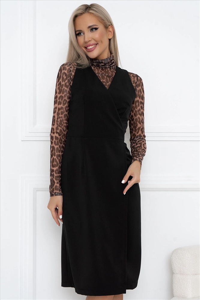 Черный сарафан с запахом отлично подойдет для осени благодаря своей универсальности.