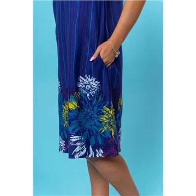 Сарафан женский из трикотажного полотна «кулирка» А-образного силуэта длинной до уровня колена. Изделие на бретелях с карманами в боковых швах.