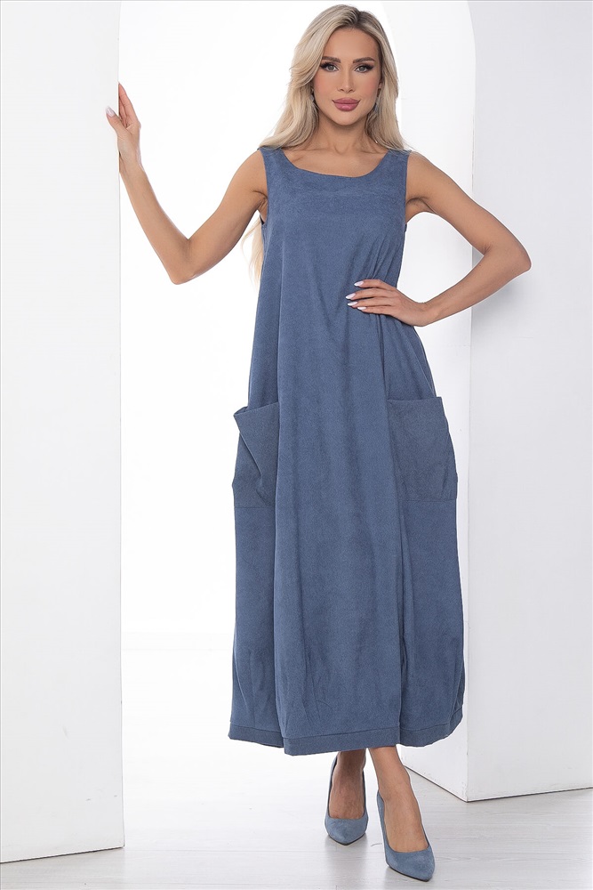 Стильный женский сарафан бохо из красивого голубого вельвета. Форма длинного сарафана нестандартная: объёмный вверх и зауженный к низу. У сарафана оверсайз заниженные объёмные накладные карманы и широкие бретели. В нашем платье- сарафане вы не останетесь незамеченной! Такая женская одежда прекрасно сочетается как со строгой рубашкой так и с обычной водолазкой!