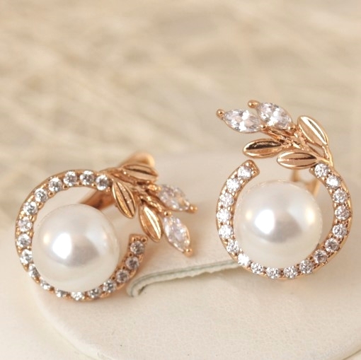 Материал: бижутерный сплав. Покрытие: золото 18К. Вставка: фианиты, жемчуг. Застежка: английский замок. Размер: 1,6 см. Комментарии к товару