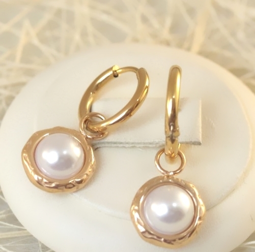 Материал: бижутерный сплав. Покрытие: золото 18К. Вставка: жемчуг. Застежка: круглый замок. Размер: 2,5 см. Комментарии к товару