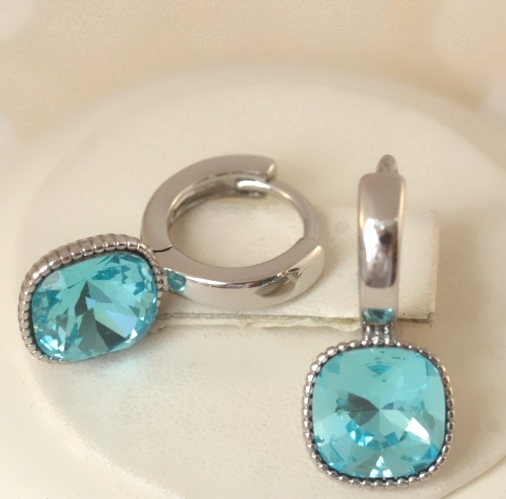 Материал: бижутерный сплав. Покрытие: родий. Вставка: австрийские кристаллы. Размер серьги: 2 см. Цвет камня: голубой. Комментарии к товару
