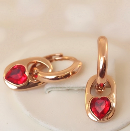 Материал: бижутерный сплав. Покрытие: золото 18К. Вставка: австрийские кристаллы. Размер серьги: 2,2 см. Цвет камня: красный. Комментарии к товару