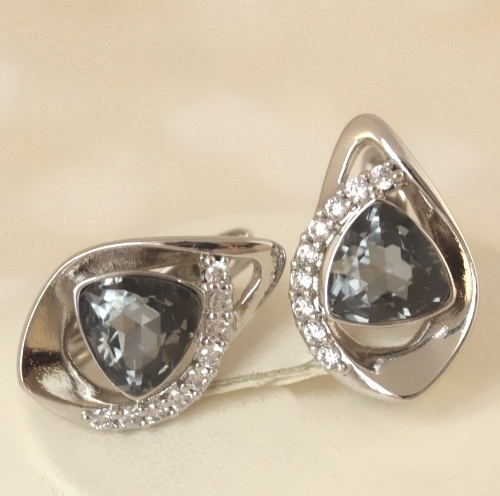 Материал: бижутерный сплав. Покрытие: родий. Вставка: австрийские кристаллы. Размер серьги: 1,7 см. Цвет камня: серый. Застежка: английский замок. Комментарии к товару