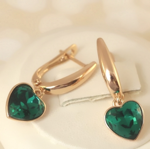 Материал: бижутерный сплав. Покрытие: золото 18К. Вставка: австрийские кристаллы. Размер серьги: 2,5 см. Размер камня: 1 см. Цвет камня: изумруд. Комментарии к товару