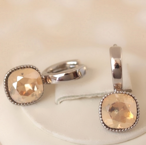 Материал: бижутерный сплав. Покрытие: родий. Вставка: австрийские кристаллы. Размер серьги: 2 см. Цвет камня: шампань. Комментарии к товару