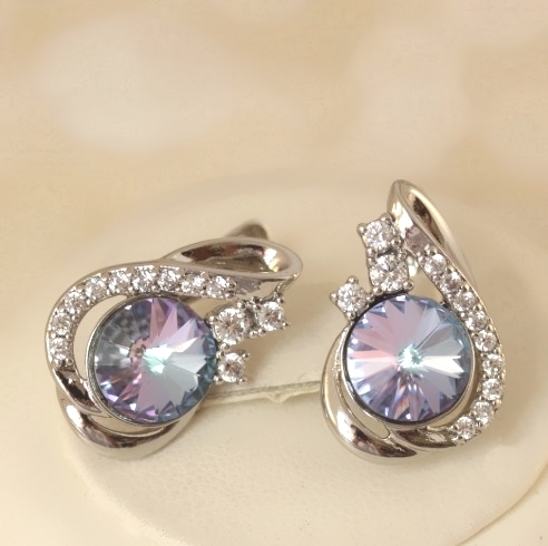 Материал: бижутерный сплав. Покрытие: родий. Вставка: австрийские кристаллы. Размер серьги: 1,8 см. Цвет камня: хамелеон. Застежка: английский замок. Комментарии к товару
