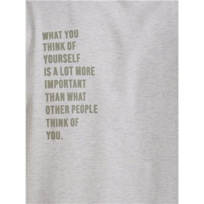 Мужская футболка оверсайз с принтом. Футболка свободного кроя подарит вам комфорт и свободу движения. Джемпер такого силуэта скрывает недостатки фигуры и подчёркивает достоинства. Майка с комфортными свободными рукавами идеальна для повседневной носки. Модель неприхотлива в уходе. Трикотажная футболка по спинке украшена стильными лаконичными принтами, оригинально расположенными не по центру. Надписи переводятся: "То, что ты думаешь о себе, гораздо важнее того, что думают о тебе другие", "Сосредоточься на себе". Принты качественные и стойкие - без проблем переносят многочисленные стирки. В составе ткани 100% хлопка - футболка мягкая, приятная на ощупь и позволяет коже дышать. Модель представлена в трёх цветах: бежевая футболка, синяя, чёрная. Размерная линейка: M (46-176); M (46-188); L (48-176); L (48-188); XL (50-176); XL (50-188); XXL (52-176); XXL (52-188); 3XL (54-188). Майка идеальна для мужчин, молодых парней, подростков. Базовая футболка оверсайз универсальна, отлично подходит для работы, учёбы, спорта, прогулок, отдыха, а также для дома и сна. Легко сочетается с различными брюками и шортами. Её можно носить летом, зимой и в демисезон (осенью и весной). Футболка с принтом оверсайз - это прекрасный подарок брату, мужу или папе на любой праздник. Выбирайте нужный размер по таблице размеров на фото. Цвет товара на экране вашего устройства может отличаться от цвета изделия вживую. Товары ТМ Pelican отгружаются без скидок, все цены фиксированные от производителя. Обратите внимание: Товары ТМ Pelican находятся на удаленном складе. Как определить размер?Все таблицы размеров Pelican (откроется в новом окне)Комментарии к товару