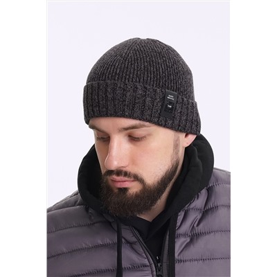Мужская шапка с отворотом из скрученной пряжи, декорирована стильной нашивкой. Отлично подойдёт для холодной осени, тёплой зимы.
