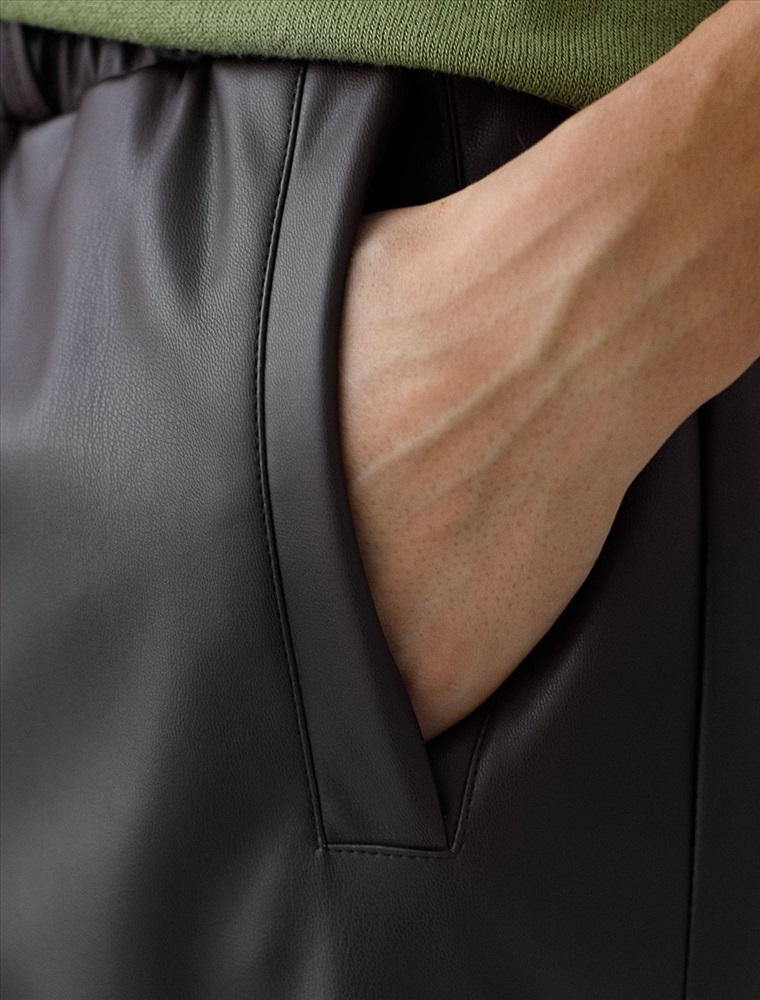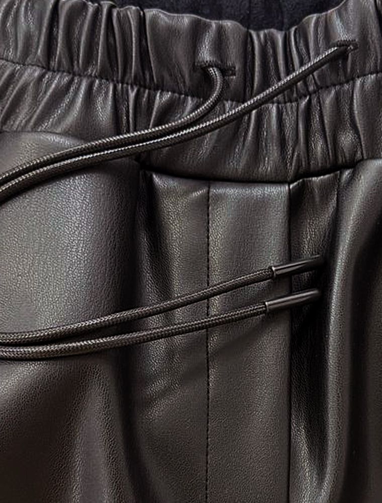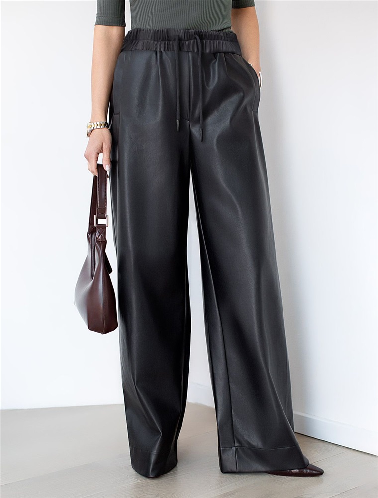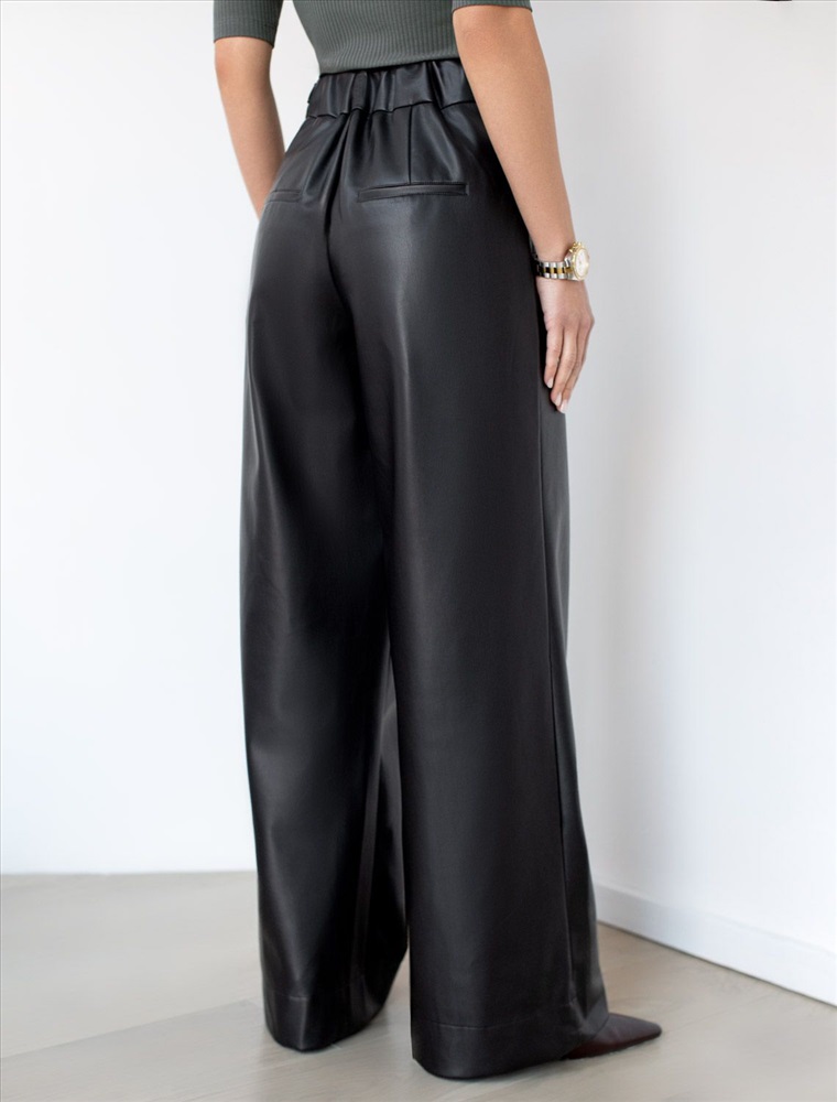 Плотность: 320 Г/м2 Размер товара на первом фото: 42 Трендовая модель для смелых fashion-образов. Эти брюки из качественной искусственной кожи создают бунтарский урбанистический лук. Модель с высокой посадкой на поясе и равномерно широким клешёным силуэтом от бедра до низа визуально вытягивает фигуру. Мягкая подкладка пояса обеспечивает комфорт, не сдавливая талию. Универсальный черный цвет легко комбинируется с объемными худи, кроп-топами или лаконичными рубашками. Идеальны для создания образов в стиле гранж, streetwear или modern rock-chic. Комментарии к товару