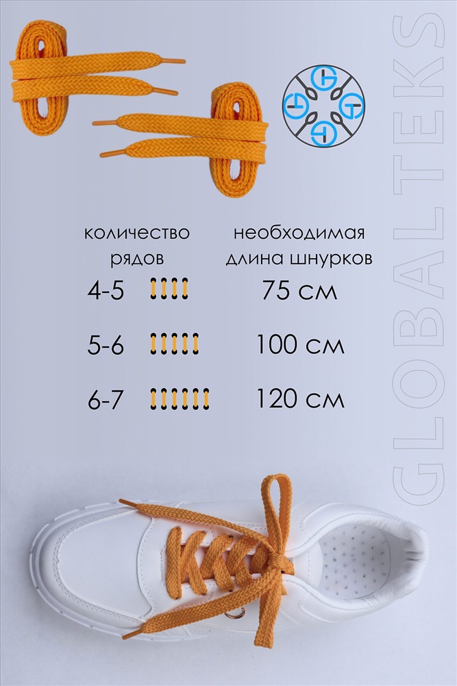 Шнурки для обуви это универсальный аксессуар, который необходим в каждому. Длина - 100 см, ширина 1 см. Отлично подойдут на кроссовки, кеды, ботинки, полуботинки, футбольные бутсы можно завязать на 5-6 пар отверстий. Наши обувные шнурки не развязываются при ходьбе и беге. Эглеты (наконечники) пластиковые.
