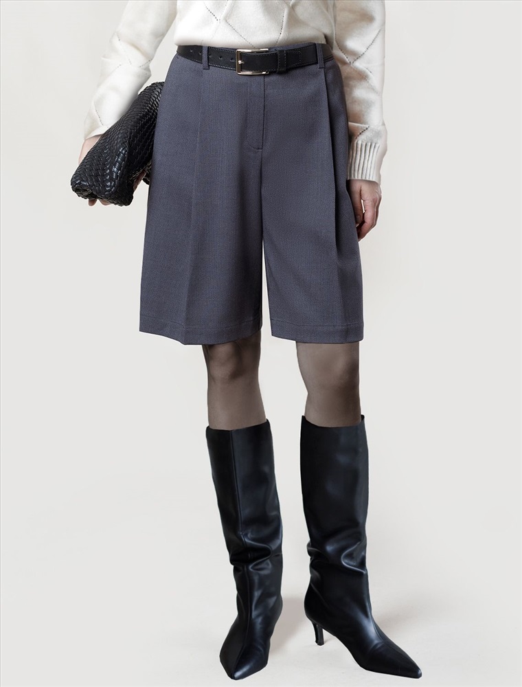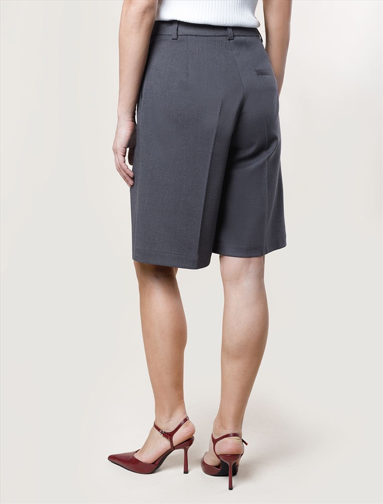Шорты-бермуды выполнены из эластичной поливискозы. По верхнему краю спереди классически заложены складки, что придает свободы и простора в районе бедер. Свободный силуэт подходит для любой фигуры. Модель идеально впишется как в офисный дресс-код, так и в повседнвный аутфит.