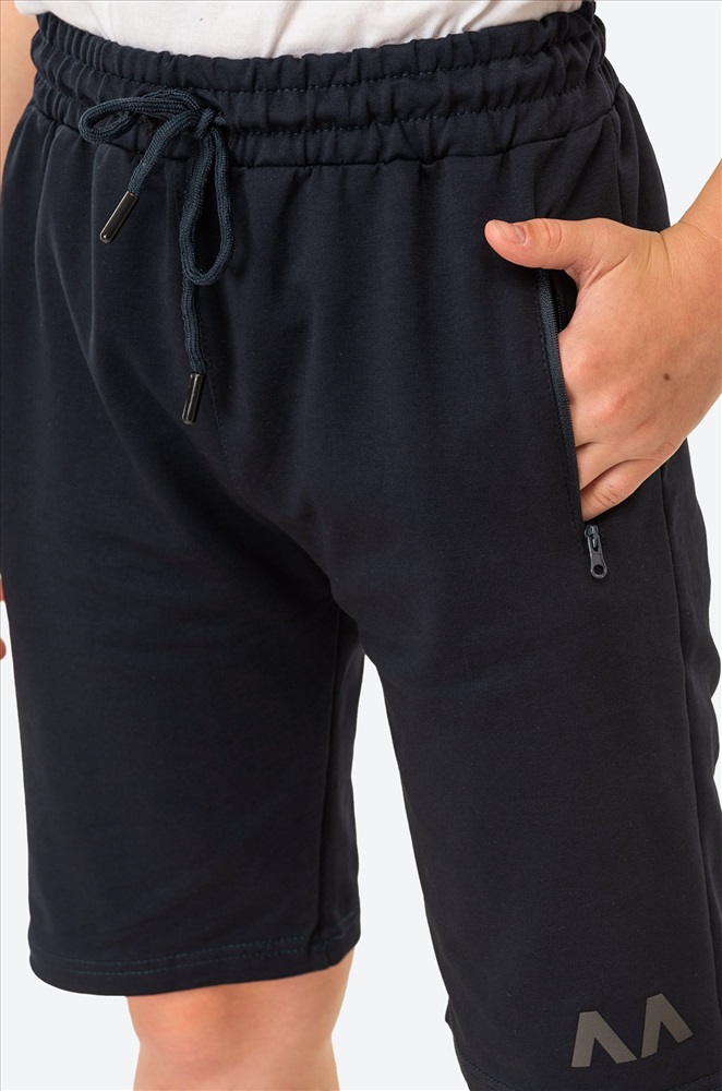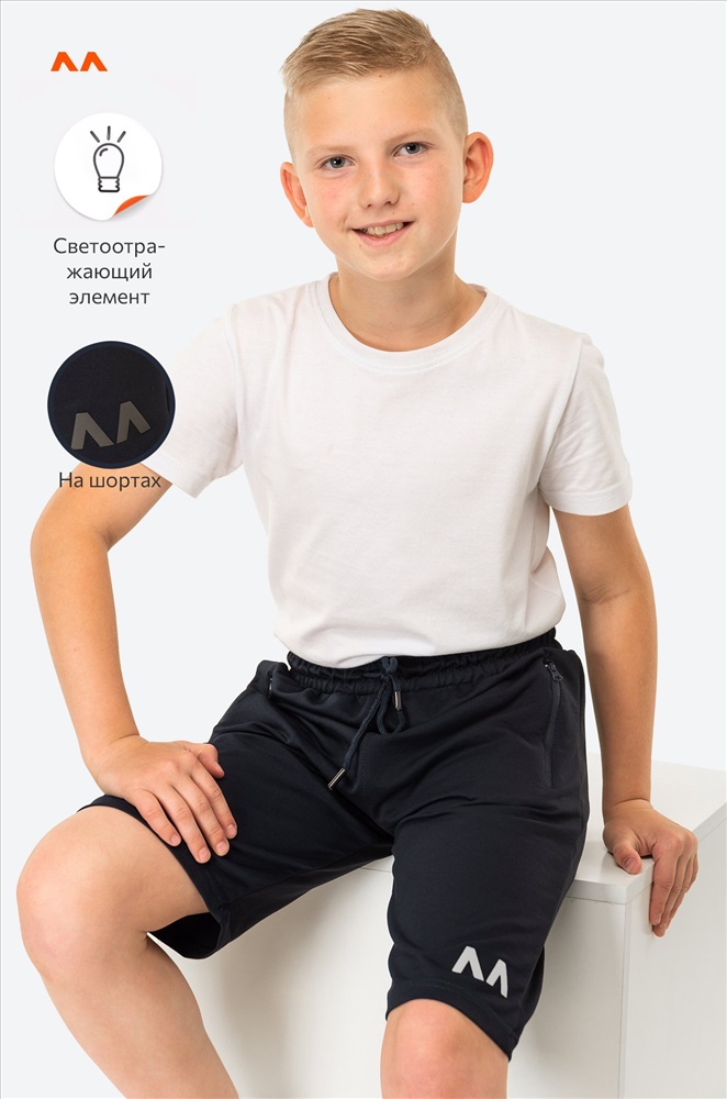 Комфорт в каждом движении! Детские спортивные шорты для мальчиков и мальчиков-подростков выполнены из плотного футера двухнитки. Свободный крой, практичные карманы на молнии, мягкая резинка – каждая деталь создана для комфорта ребенка. Шорты для детей представлены в синем цвете и украшены светоотражающими элементами.