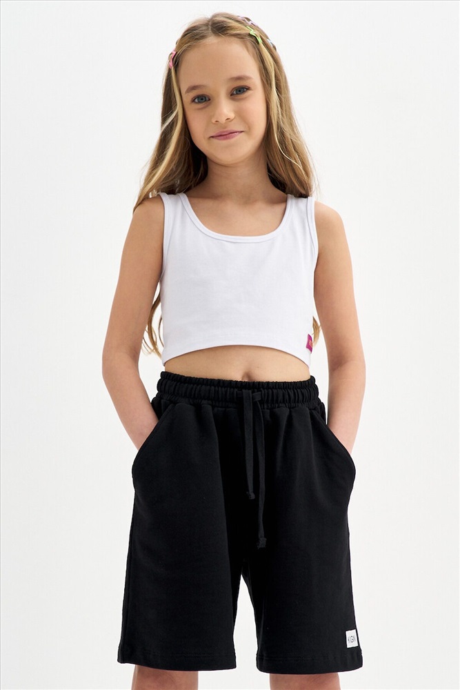 Шорты для девочки в стиле оверсайз, на поясе с резинкой и шнурком для фиксации