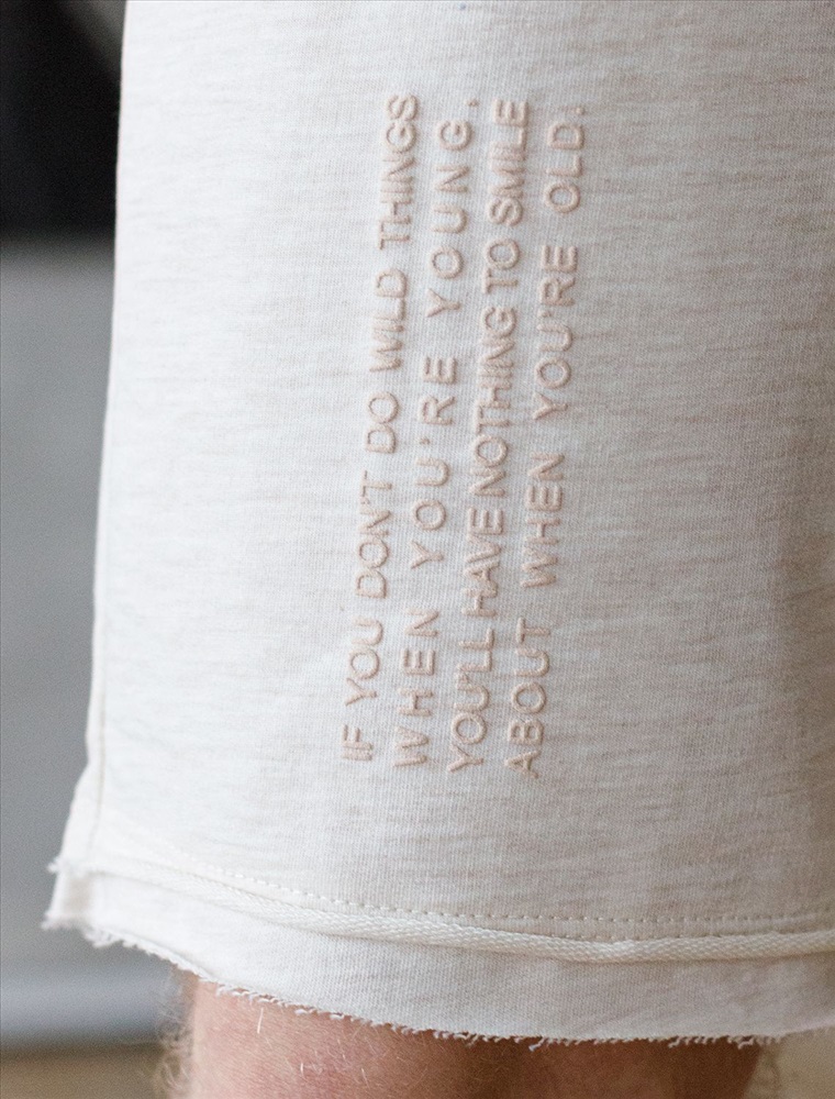 Шорты выполнены из тонкого футера. Эластичный пояс на резинке. Мягкая хлопковая ткань очень приятная к коже, в которой будет комфортно на протяжении всего дня. Изделие украшено авторским принтом на нашивке и логотипом бренда на эко-коже. Модель сочетается в комплекте с футболкой U49.011