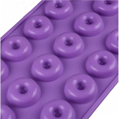 Форма подходит для изготовления пончиков, состоит из 18 ячеек радиусом 1.5 см. Актуальное кондитерское блюдо и на праздник и в повседневные будни.