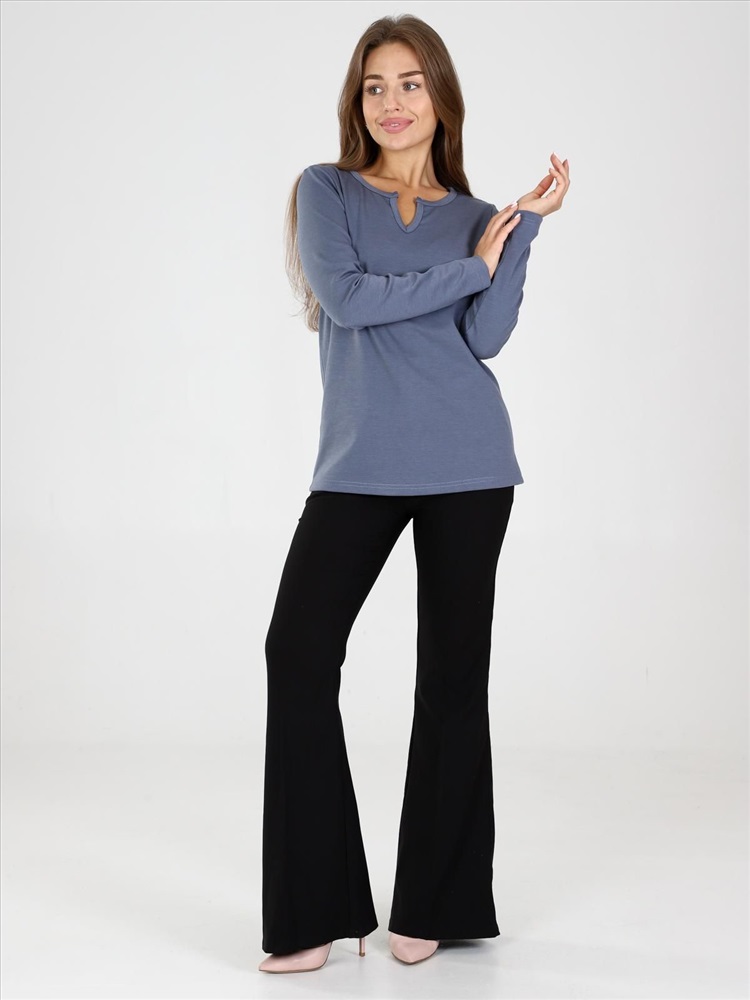Женский лонгслив «Синти» выполнен из трикотажного приятного к телу полотна "милано". Не глубокий фигурный вырез и комфортная посадка по фигуре. Модель прямого силуэта, с длинным рукавом, длиной до уровня бедер. Хорошо сочетается с любой одеждой.