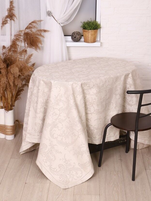 Название: Кружева-натур. Ткань: жаккард Состав: п/лен Плотность: 240 г/м2 Размер: 170*250 см. Скатерть квадратная жаккардовая с ажуром "Кружева"-натур. Размер: 170*250 см. Состав: лен 50%,хлопок 50% Скатерть из льна класса Премиум - сочетание непревзойденного качества, утонченного стиля, необычайной красоты и долговечности. Она станет прекрасным украшением Вашего стола. Прикосновение к ткани дарит самые приятные ощущения. Скатерть изо льна гигроскопична, быстро впитывает влагу, но в тоже время быстро высыхает. Лен устойчив к загрязнениям, выносит большое количество стирок. Комментарии к товару