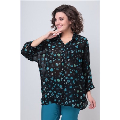 Комплект женский состоит из блузы и брюк. Блузка удлененная свободного кроя. Передняя часть блузы, свободного кроя без талиевых выточек. По центру спинки кокетка. Воротник рубашечного типа на стойке. Низ изделия с фигурными вырезами по боковым швам. Рукав втачной по низу рукава манжет с застежкой на пуговицу. Брюки заужены к низу на широком поясе, по переду карманы, застежка молния и пуговицы. Длина брюк в 50 размере 93 см + 5 см пояс.