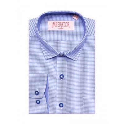 Состав: 65% хлопок, 35% полиэстер. Цвет голубой. Отделка контрастной тканью по вороту, планке и на манжетах. Крой прямой. Длинный рукав. Товар сертифицирован.