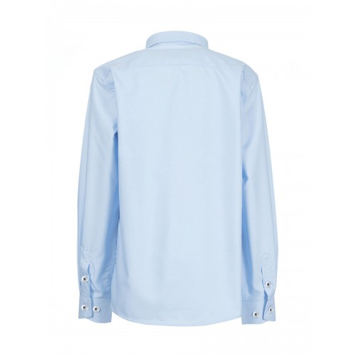 Состав: 55% хлопок 45% полиэстер Модель прямого кроя с накладным нагрудным карманом, комбинированная контрастной тканью по внутренним вороту и манжетам. Цвет голубой. Длинный рукав. Товар сертифицирован.