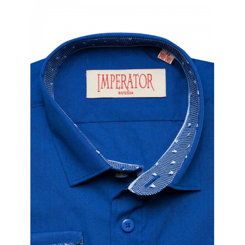 Состав: 55% хлопок, 45% полиэстер. Цвет синий. Отделка контрастной тканью по вороту, планке и на манжетах. Крой прямой. Длинный рукав. Товар сертифицирован.