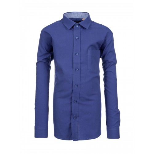 Состав: 55% хлопок, 45% полиэстер. Цвет синий. Отделка контрастной тканью по вороту, планке и на манжетах. Крой прямой. Длинный рукав. Товар сертифицирован.