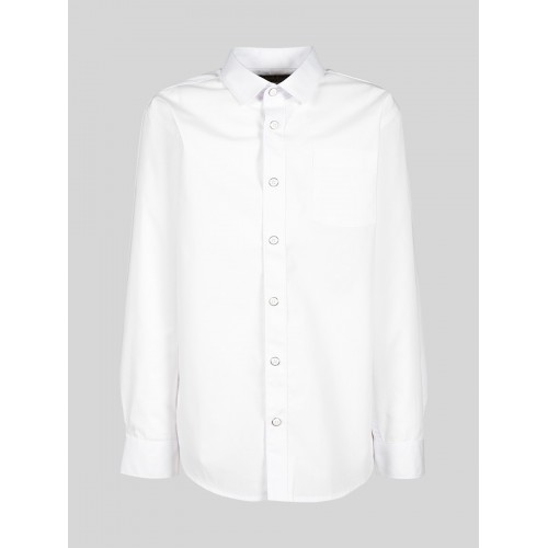 Цвет белый. Воротник классический рубашечный с уплотнением. На груди накладной карман.