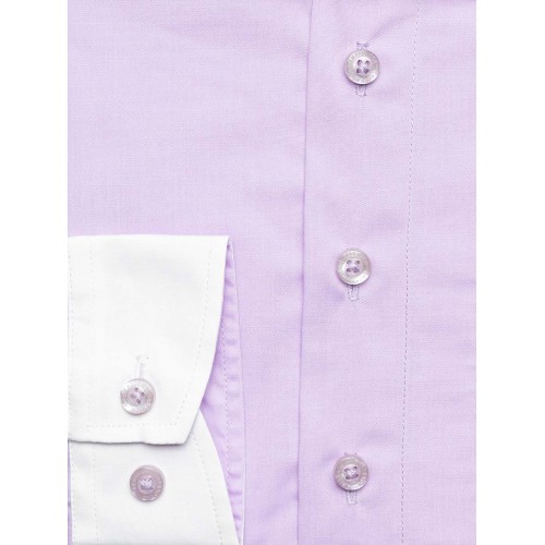 Состав: 55% хлопок, 45% полиэстер. Цвет сиреневый. Отделка контрастной белой тканью по вороту и на манжетах. Крой прямой. Длинный рукав. Товар сертифицирован.