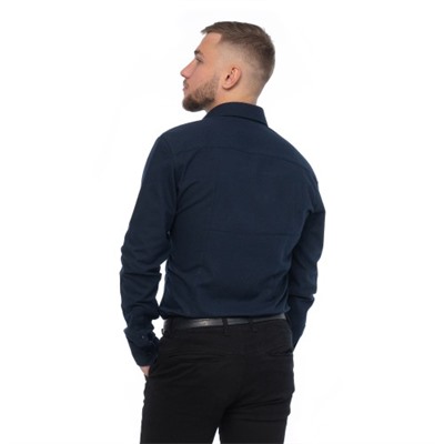 Модель приталенного силуэта, комбинированная контрастной тканью по внутренним вороту и манжетам. Цвет темно-синий. Длинный рукав. Товар соответствует техническому регламенту о безопасности продукции легкой промышленности.