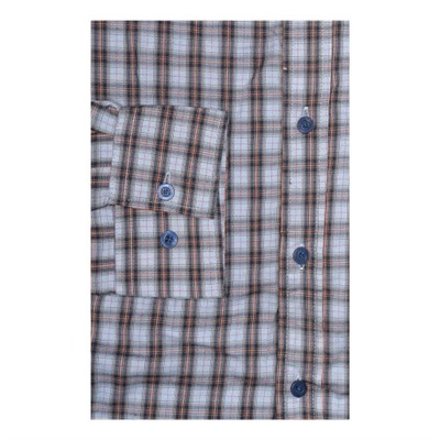 Модель прямого силуэта с накладным нагрудным карманом. Цвет голубой/коричневый (клетка). Длинный рукав. Товар соответствует техническому регламенту о безопасности продукции легкой промышленности.