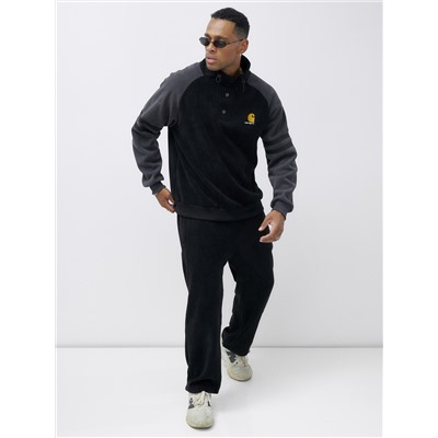 Спортивный костюм мужской демисезонный на флисе черного цвета 322Ch