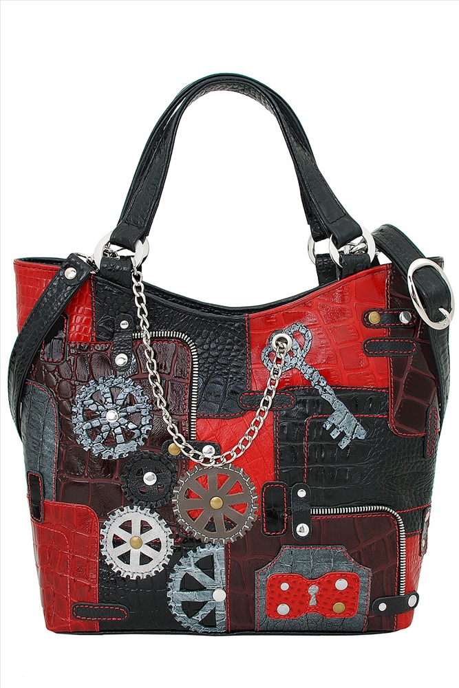 Артикул: 189-2403-125 Аппликация: "Техно" Цвет: черный+красный Натуральная кожа: рептилия кайман Подкладка: 100% п/э Высота ручек: 16 см Ремень плечевой: 107-127 см Параметры: 32х26х12 см