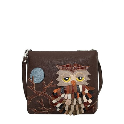 Артикул: 310-0901-92; Аппликация: "Сова №2"; Цвет: капучино; Натуральная кожа: флотер; Подкладка: 100% п/э; Ремень плечевой: 108-130 см; Параметры: 24х22х3,5 см