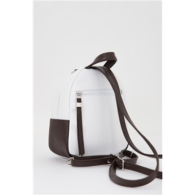 Сумка-рюкзак женская небольшого размера. Рюкзак застегивается на молнию и имеет одно отделение. Лямки рюкзака регулируются по длине. На передней стенке расположен карман на молнии. На задней стенке также есть карман на молнии. Рюкзак на подкладке. Внутри расположены карманы на молнии и накладной карман для мобильного телефона и визиток.