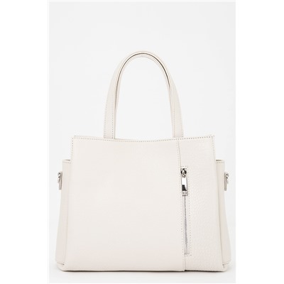 Сумка женская среднего размера с короткими ручками и съемным регулируемым ремнем через плечо. На передней стенке расположен карман с металлической молнией. Сумка на подкладке и имеет три отделения. Центральное отделение застегивается на молнию и внутри имеет карман на молнии ,накладной карман для мобильного телефона и визиток. Два внешних отделения застегиваются на магнит, соединяясь между собой.