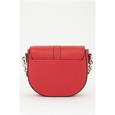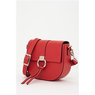 Цвет: красный Натуральная кожа: флотер Подкладка: 100% п/э Ремень плечевой: 112 см Параметры: 21х18х7 см Сумка женская полукруглая с несъемным нерегулируемым ремнем через плечо. Сумка застегивается на клапан с магнитом и имеет одно отделение. Клапан имеет отделку из гладкой кожи с металлическим кольцом и завязкой из кожи. Ремень сумки также выполнен из гладкой кожи и декорирован металлическими цепями по бокам. На задней стенке расположен внутренний карман. Сумка на подкладке. Внутри сумки расположен карман на молнии и накладной карман для визиток и мелочей. Комментарии к товару