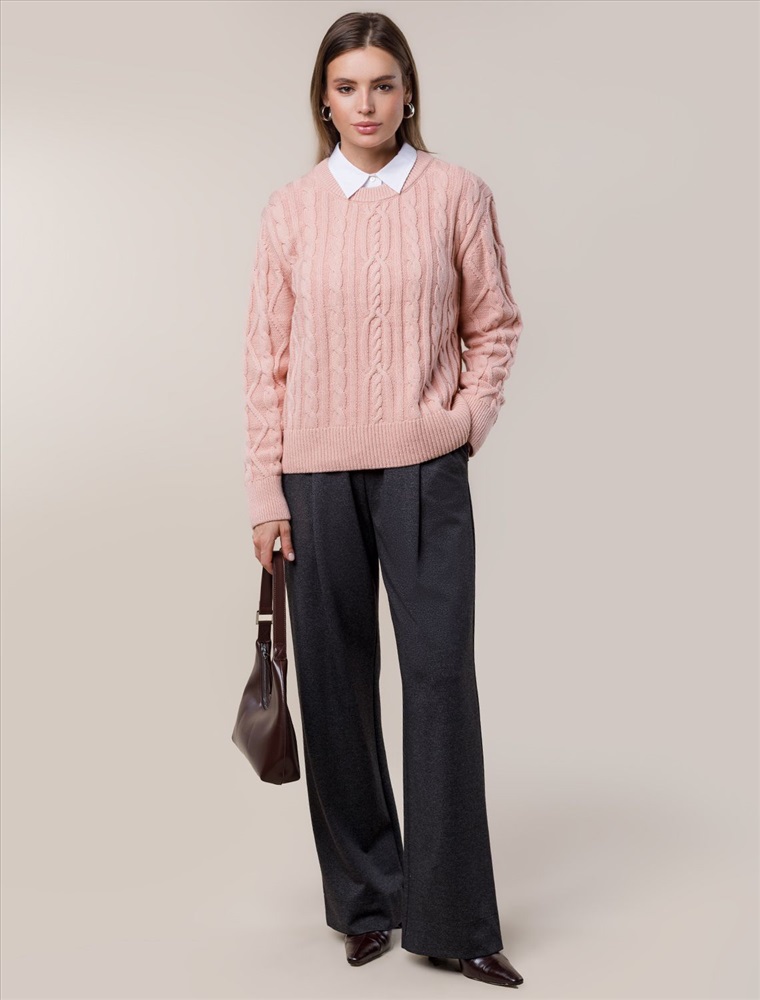 Параметры модели на первом фото: Рост 172, бюст 88, талия 64, бедра 88 Свитер выполнен из мягкой хлопковой пряжи фактурной вязки с добавлением акрила. Модель связана изнаночной петлей, в сочетании с которой узор косы и высокие рибаны поддерживают ирландский стиль, который всегда в тренде. Круглый вырез. Свободная посадка. Комментарии к товару